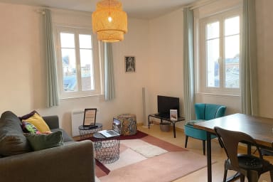 Located right in the center of Trouville, close to the shops and restaurants on Rue des Bains. Two minutes’ walk from the beach and 10 minutes’ walk from the train station. A lively, vibrant, and very pleasant neighborhood. Perfect for friends or families to explore Trouville and Deauville on foot!
